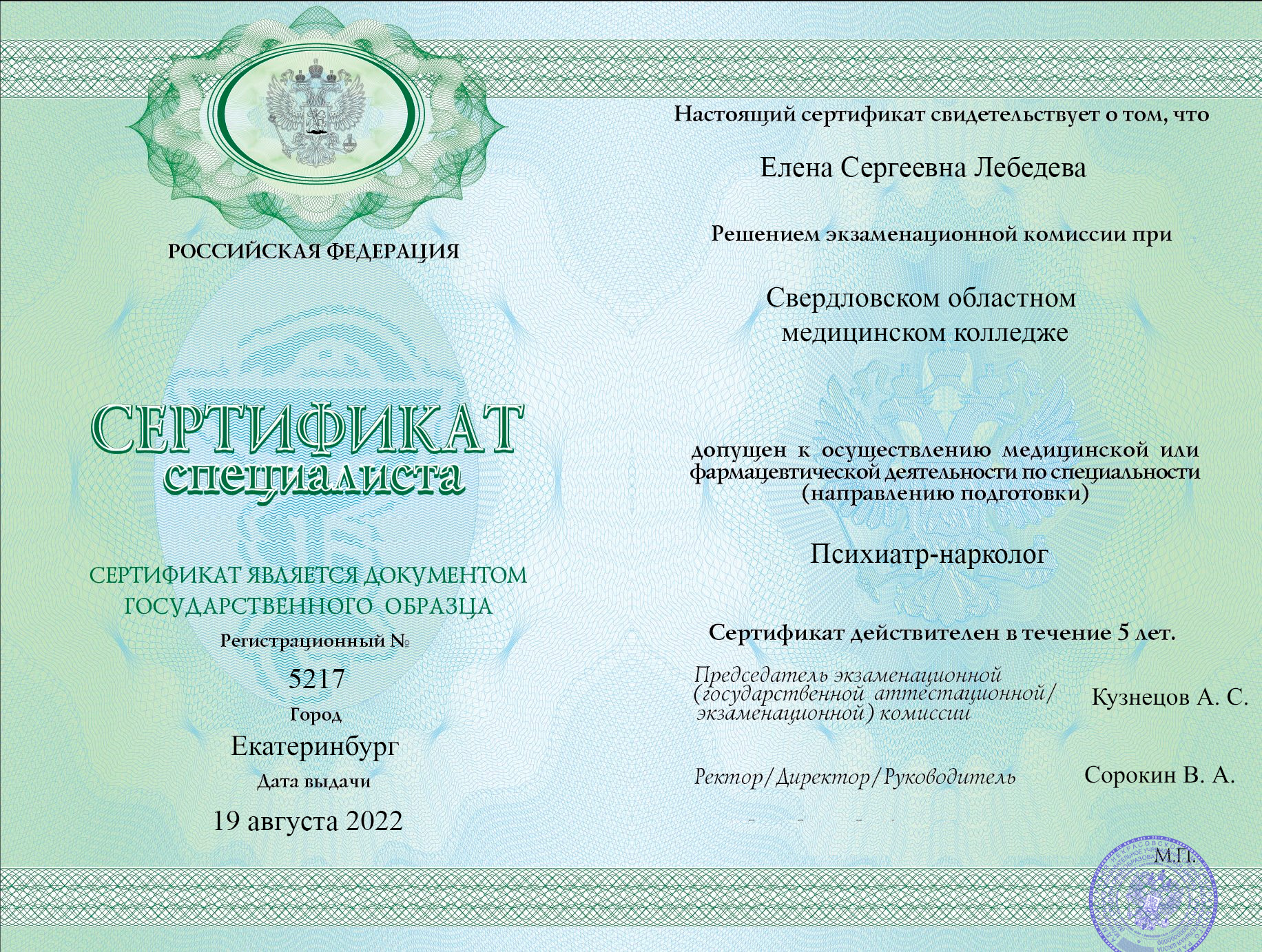 Елена Сергеевна Лебедева врач нарколог клиники доктора Стукаловой в Свердловске